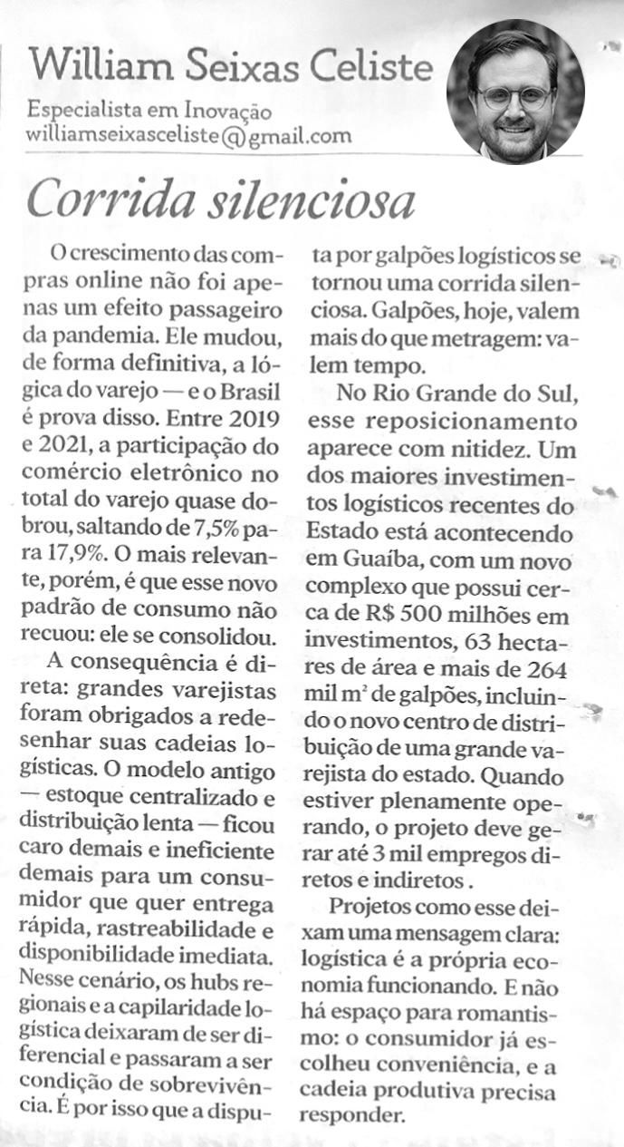 Na última segunda-feira, foi publicado no Jornal NH meu artigo sobre a transformação silenciosa, mas definitiva, que vivemos no varejo e na logística brasileira.
